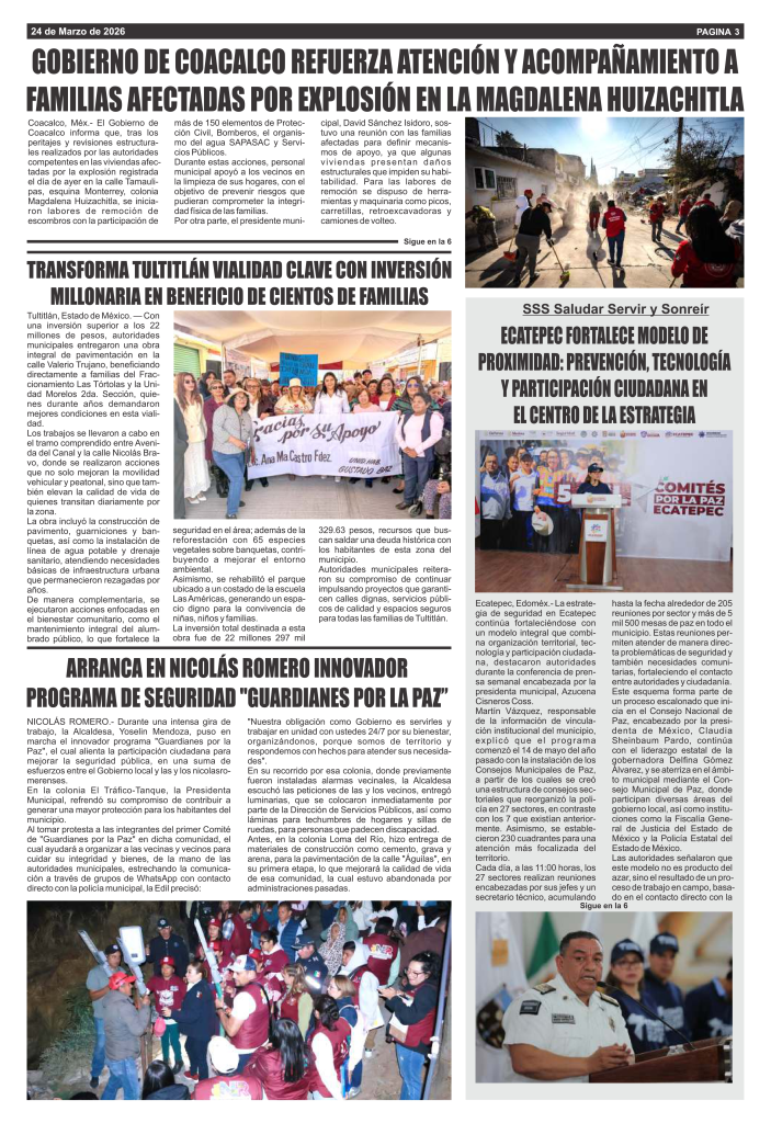 Noticias EN NICOLÁS ROMERO NOS ADELANTAMOS A LA TEMPORADA DE LLUVIAS CON ACCIONES PREVENTIVAS Azteca Diario Mar 10, 2026