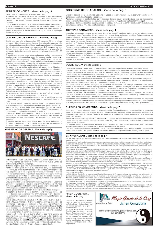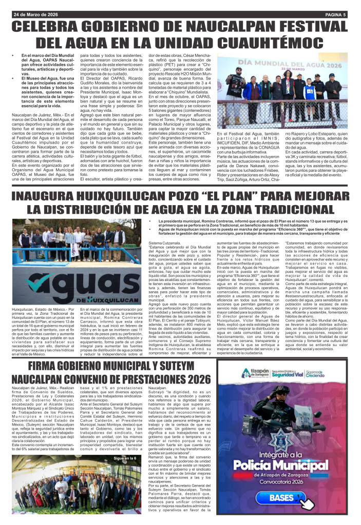 Noticias NAUCALPAN ESTÁ EN PROCESO DE TRANSFORMACIÓN Y NO NOS VAN A DETENER: ALCALDE ISAAC MONTOYA Azteca Diario Mar 11, 2026