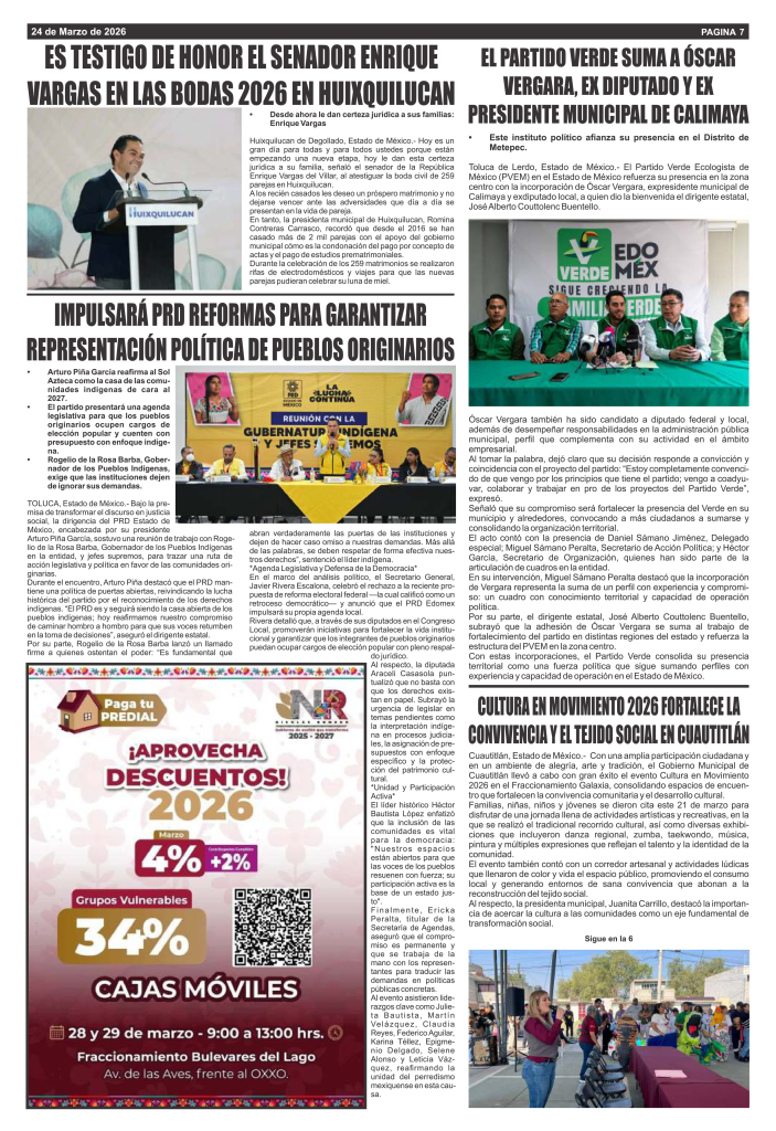 Noticias Nuestro presidente Arturo Piña continúa fortaleciendo la presencia del partido en el sur mexiquense Azteca Diario Mar 12, 2026
