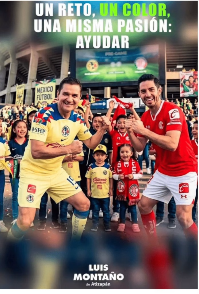Atizapán de Zaragoza.— En el contexto del encuentro entre el Club América y el Deportivo Toluca, el empresario y activista social Luis Montaño propuso un reto con causa dirigido al dirigente estatal José Alberto Couttolenc Buentello, con el objetivo de beneficiar a una casa hogar del municipio.