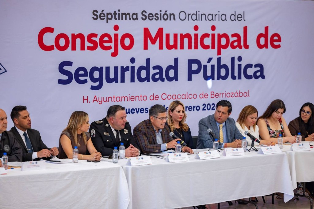 Coacalco de Berriozábal, Estado de México.- El presidente municipal de Coacalco, David Sánchez Isidoro, encabezó la Séptima Sesión Ordinaria del Consejo Municipal de Seguridad Pública, en la que se acordó reforzar los operativos en la demarcación y fortalecer las reuniones vecinales.