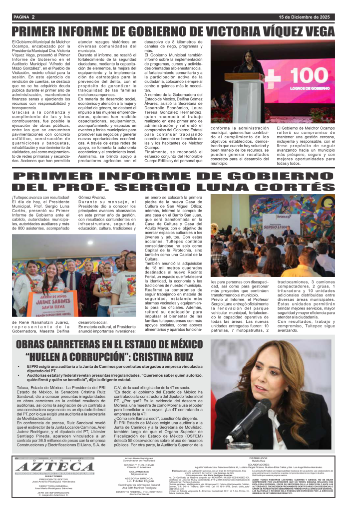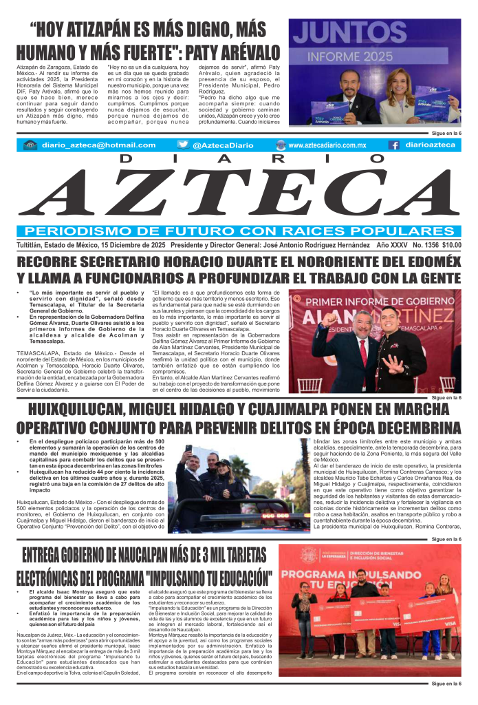 Noticias Diario Azteca 15 de Diciembre Azteca Diario Dic 16, 2025 0 Facebook Twitter WhatsApp Email Print