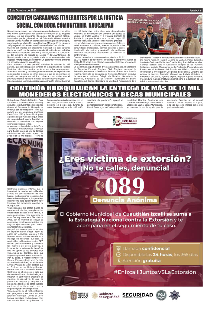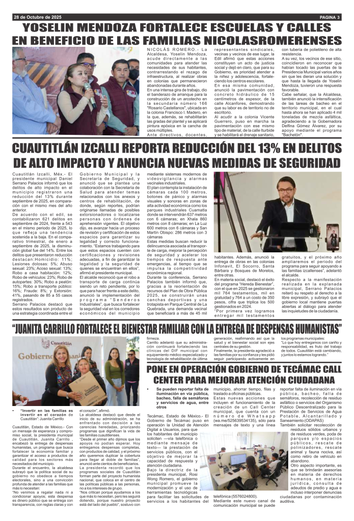 Noticias Cuautitlán Izcalli reporta reducción del 13% en delitos de alto impacto y anuncia nuevas medidas de seguridad Azteca Diario Oct 28, 2025