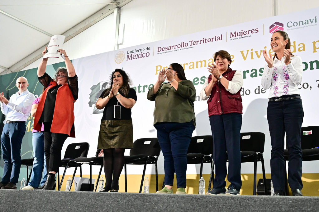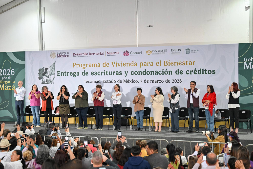 TECÁMAC, Estado de México.– La Presidenta Claudia Sheinbaum Pardo y la Gobernadora Delfina Gómez Álvarez encabezaron en este municipio la entrega de escrituras y la condonación de créditos del Programa Vivienda para el Bienestar, acción que forma parte del Plan de Rescate a la Zona Oriente del Estado de México que impulsa el Gobierno de México, en coordinación con el Gobierno estatal y municipios de la región, en beneficio de 10 millones de personas.