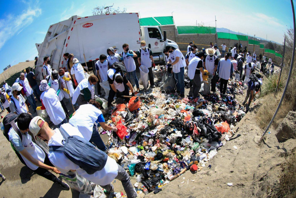 • Más de mil personas participaron en el retiro de más de 10 toneladas de desechos sólidos en las inmediaciones del relleno Sanitario de Santiago Tepatlaxco.