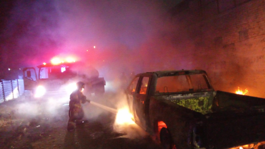 Elementos de la policía municipal y bomberos de Ecatepec atendieron el incendio de una camioneta en la colonia Olímpica Jajalpa, sin que se reportaran personas lesionadas.