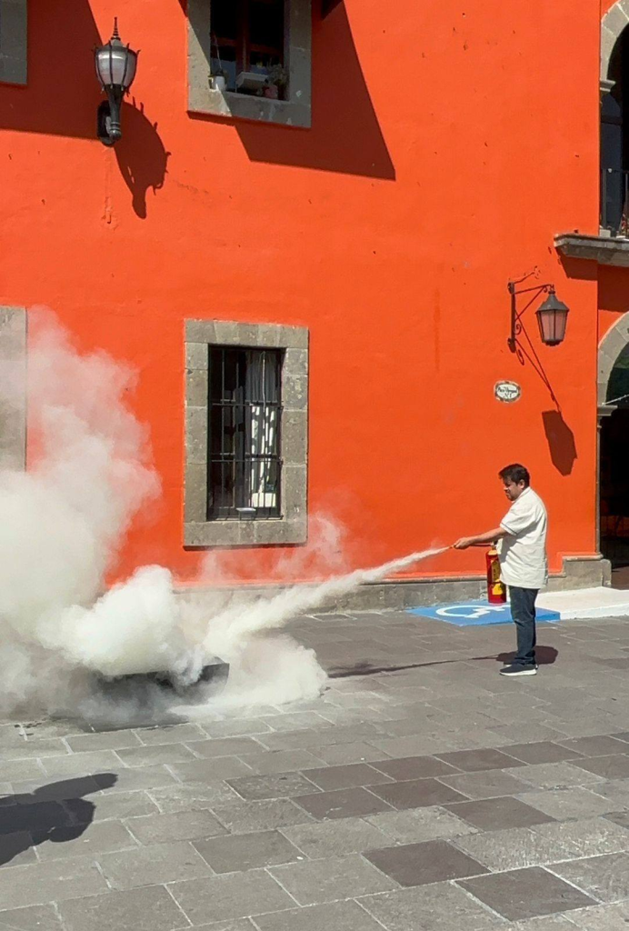 “En sus instalaciones existen fuegos clase A, como papel o madera, y clase B, relacionados con equipos eléctricos. Si se usa un extintor que no es el adecuado, se ponen en peligro ustedes”, advirtió.